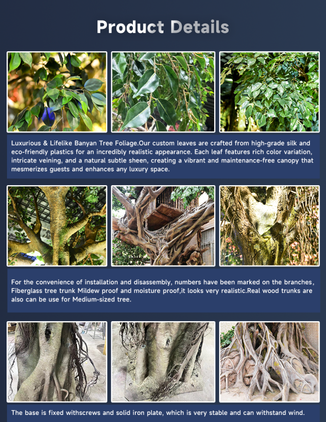 | Product Name | artificial banyan tree | Material | Plastic and fiberglass |
