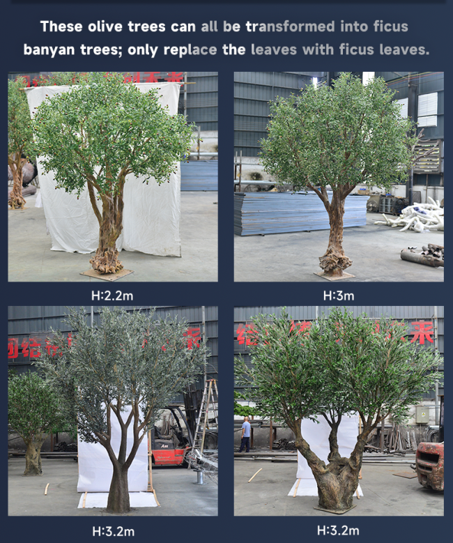 These olive trees can all be transformed into ficus banyan trees; only replace the leaves with ficus leaves.