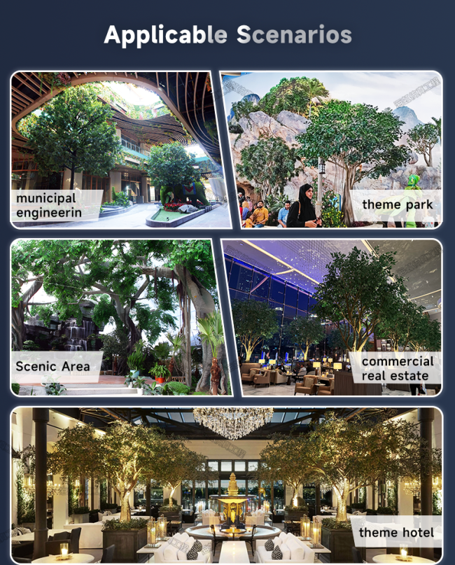 | Application | Hotel Lobbies,Resorts,Shopping Malls,Restaurants & Cafés,Theme Parks,railway stations, auditorium, entertainment venues,ecological landscape,exhibition hall, etc. | Certification | ISO/Flame Retardant Test Report/REACH/RoHS |