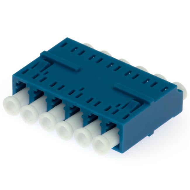 Single Mode Multimode LC 6 Port Flangeless Fiber Optic Adapter is compact, space saving adapters feature either ceramic or bronze alignment sleeves. It provides precision mating for both Multimode and Single Mode applications.
