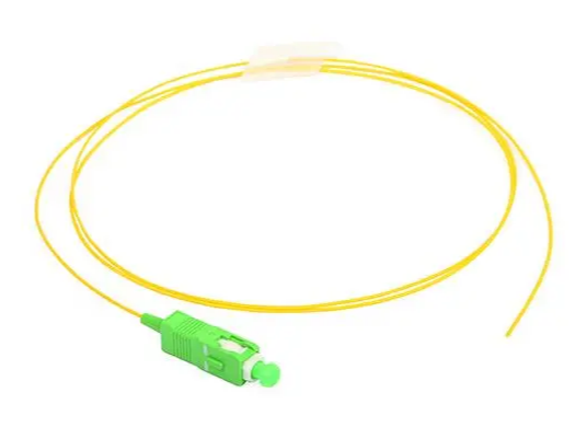 SC pigtail, in one end has a SC connector, and the other end is the broken end of a fiber optic cable core, connected with other fiber optic cable core through fusion, often appear in the optical fiber terminal box, used to connect the optical cable and optical fiber transceiver(betwwen the coupler jumper, etc.)