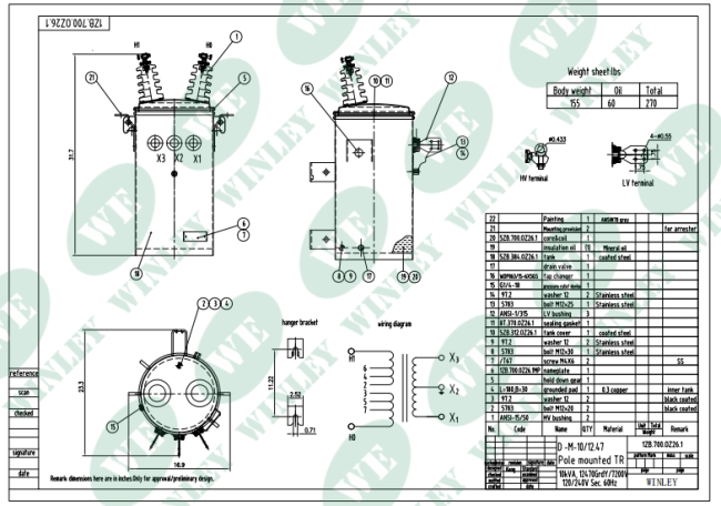 WINLEY’s pole‑mount transformers are UL/cUL certified and available in rated capacities from 10 kVA to 333 kVA. Our products meet or exceed major international standards, including ANSI, IEEE, CSA, and IEC 60076. With extensive experience in pole‑mount transformer design and manufacture, WINLEY provides comprehensive technical support and after‑sales service.