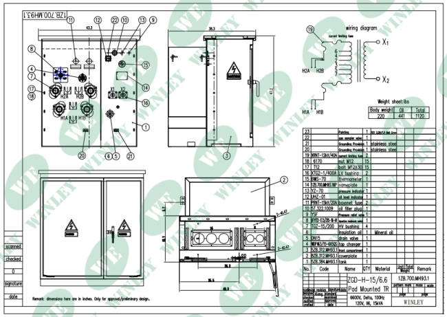 | Primary Voltage | 6600V | Enclosure Rating | NEMA 3R Weatherproof Wiring Cabinet, Sealed Tank |