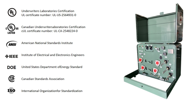 WINLEY’s single‑phase pad‑mounted distribution transformers are UL and cUL certified, designed to applicable ANSI, IEEE, NEMA, and DOE standards, and built for safe, reliable operation in underground electrical distribution networks.