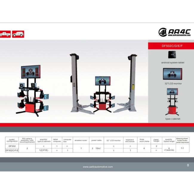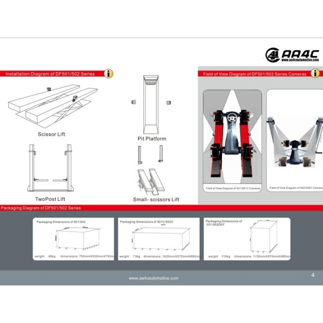 | Packaging Details | AA4C DF501 3D wheel alignment machine 5 cameras no camera beam no cabinet no monitor no computer be applicable to scissor lift, four post lift and pit. |