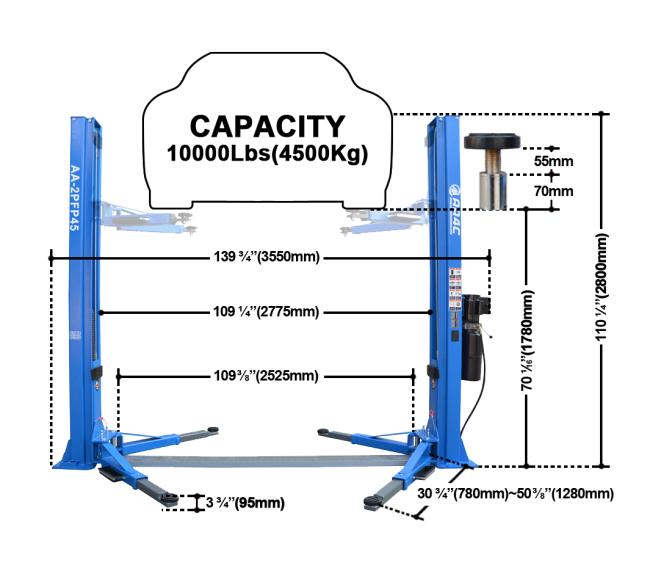 | Model Number | AA-2PFP45 | Supply Ability | 1000 Set/Sets per Month 2 post lift 4.5T ,8 bents post, new carriage AA-2PFP45 |