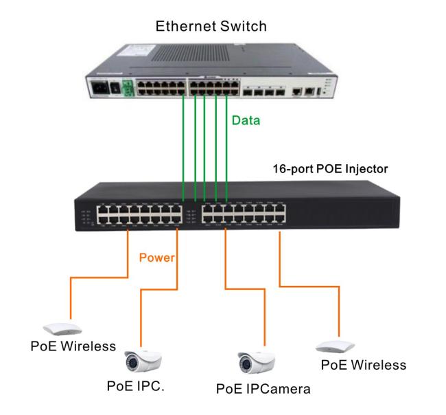 LAN: 16 x RJ-45 STP, “Data” Input Port POE: 16 x RJ-45 STP, “Data + Power” Output Port AC Connector: 1 x AC Input power socket, IEC-60320 C13 |